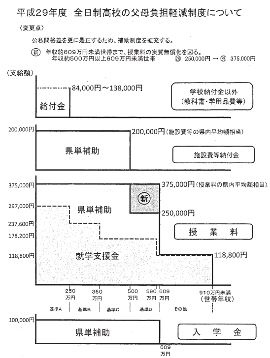 県の2017年度全日制高校の父母負担軽減制度は図1のようになっています。